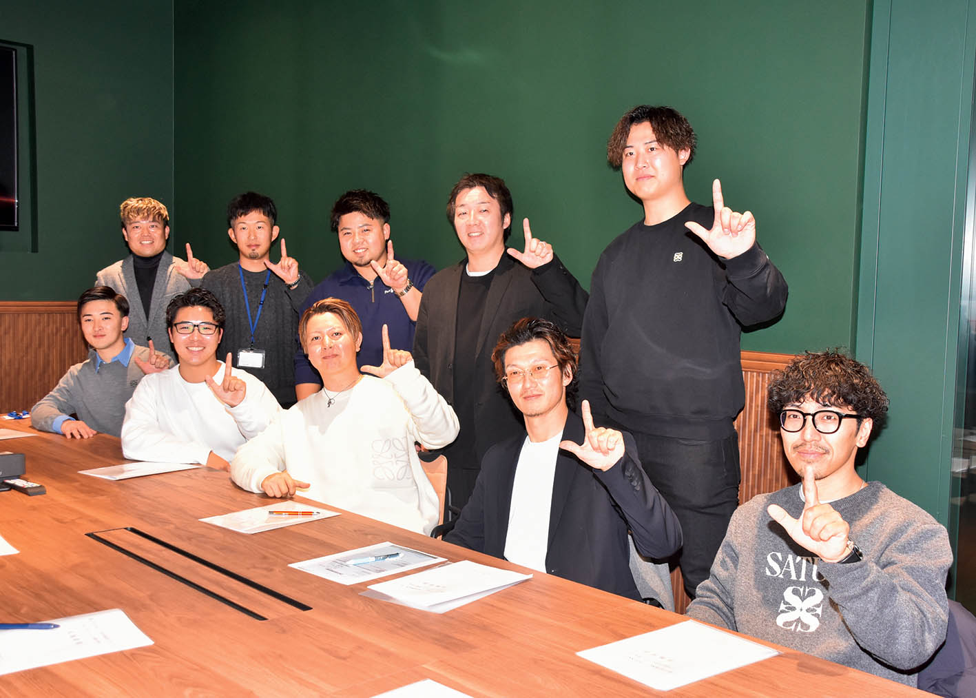 JAPANKOIカップの頭文字を取ってJポーズを決める大会実行委員ら。