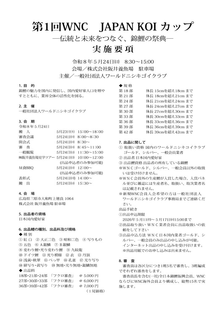 そんな同クラブの若手が中心となり、国内愛好家のみで行われる新たな品評会「第1回WNC JAPANKOIカップ」が、5月24日㈰に開催されることが決まった。