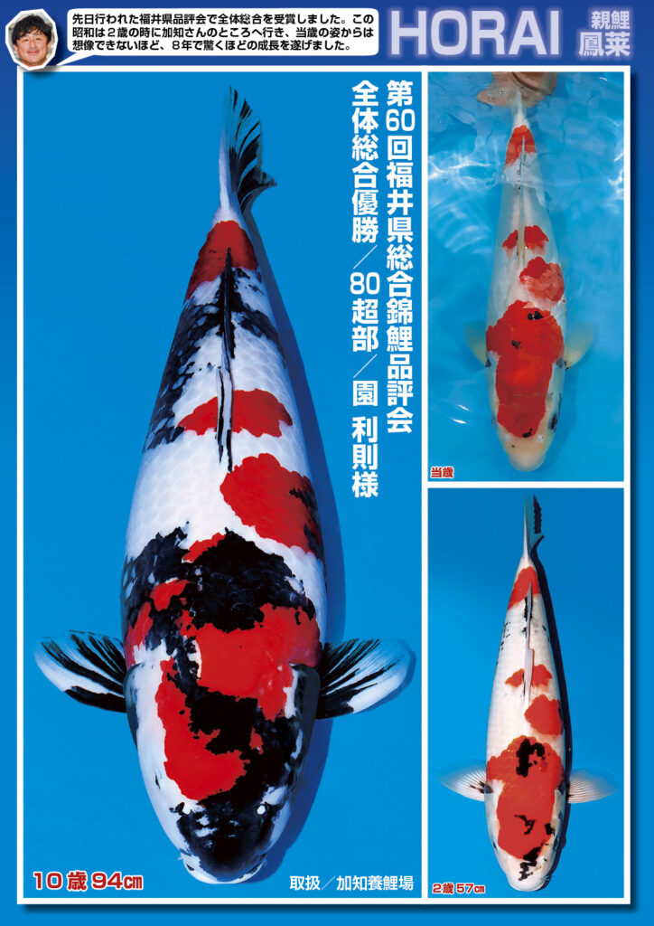 大日養鯉場㈱トヨタ店の間野弘さんが錦鯉の変化を発信する「Your Koi」。第6回となる今回は弘さん厳選の6本の昭和をご紹介。それぞれ親鯉の違う昭和の特徴や違いなどを見比べ、あなた好みの系統を見つけてみて下さい。