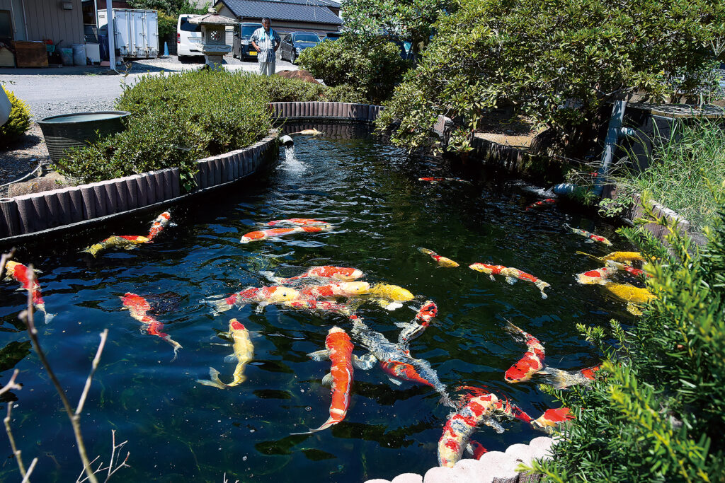 小谷野さんが錦鯉飼育を始めたのは30年ほど前。当時作った20トンの庭池は現在も使用している。