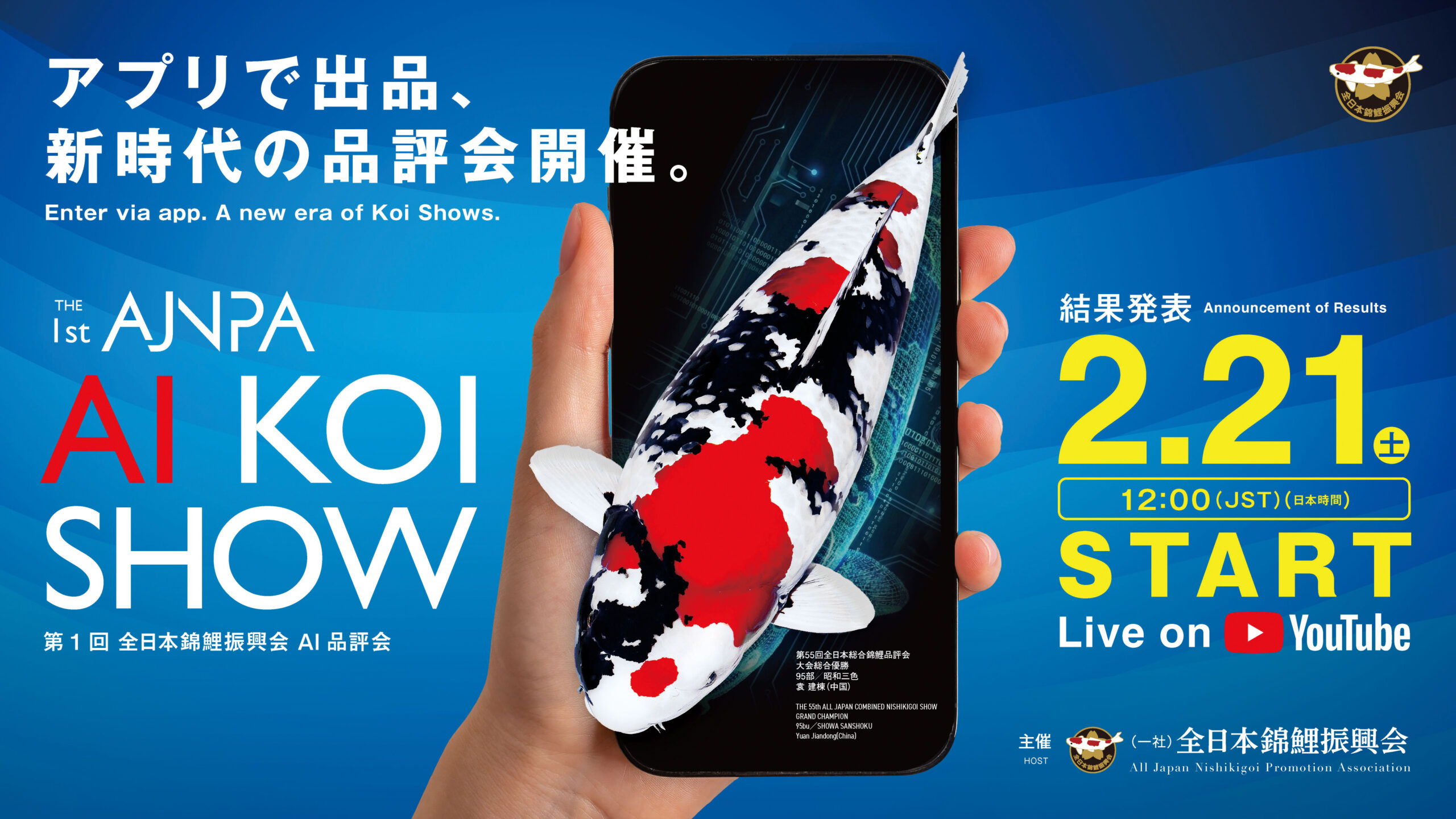 (一社)全日本錦鯉振興会による新たな試み「第1回全日本錦鯉振興会AI品評会」が2月21日㈯に開催されるにあたり、エントリー受付が12月27日㈯から開始された。