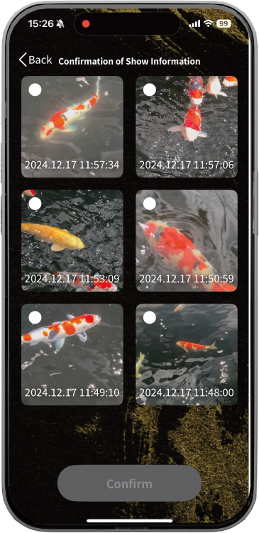 エントリーはアプリ上の「愛鯉登録」と「写真・動画のアップロード」のみで完結。審査の要となる画像は加工禁止といった規定が設けられており、公正さを保つための厳格なルールのもと審査が行われる。体形・質・模様・仕上がりも重要だが、ヒレの開き具合や魚体の角度、まっすぐに撮れているかといった、撮影の仕方も審査の結果を左右する重要な要素になっている。
