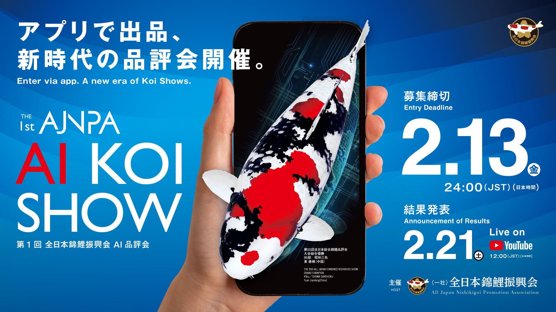 (一社)全日本錦鯉振興会による新たな試み「第1回全日本錦鯉振興会AI品評会」が2月21日㈯に開催されるにあたり、エントリー受付が12月27日㈯から開始された。