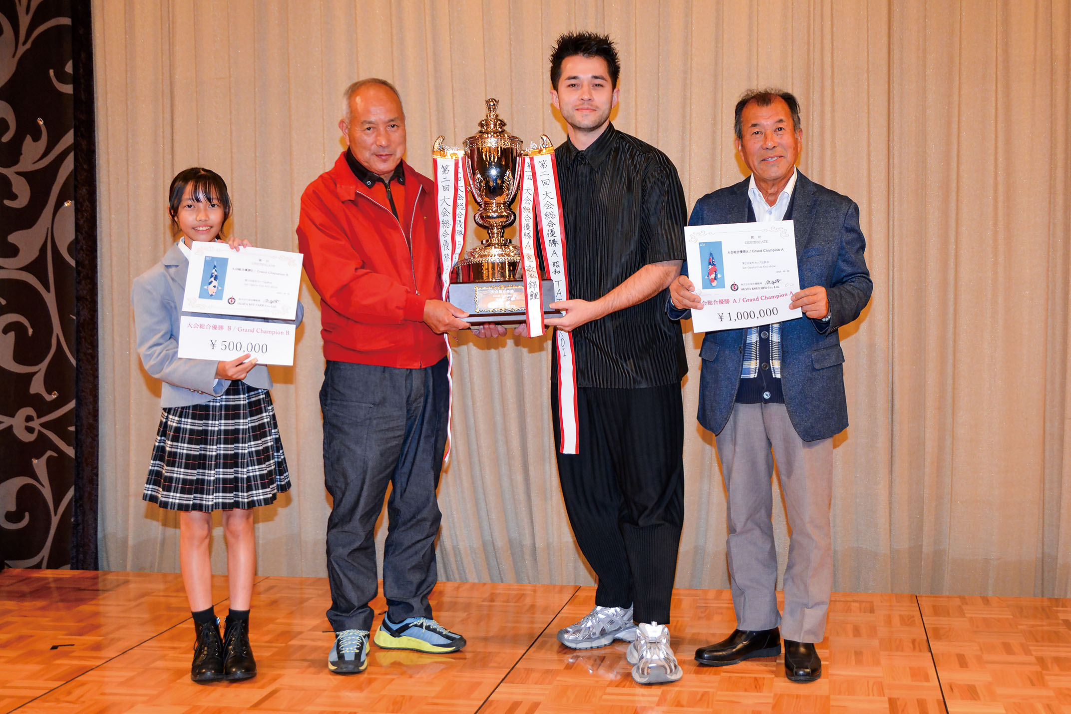出品鯉を取り扱ったすべての業者が審査員として参加し、国内外の約30名による審査が行われ、御三家から選出される大会総合優勝AはTatsu Koi Bonsai(ドイツ)出品の昭和三色、御三家以外から選出される大会総合優勝Bは堀川屋(長崎)出品の白写りがそれぞれ選ばれた。