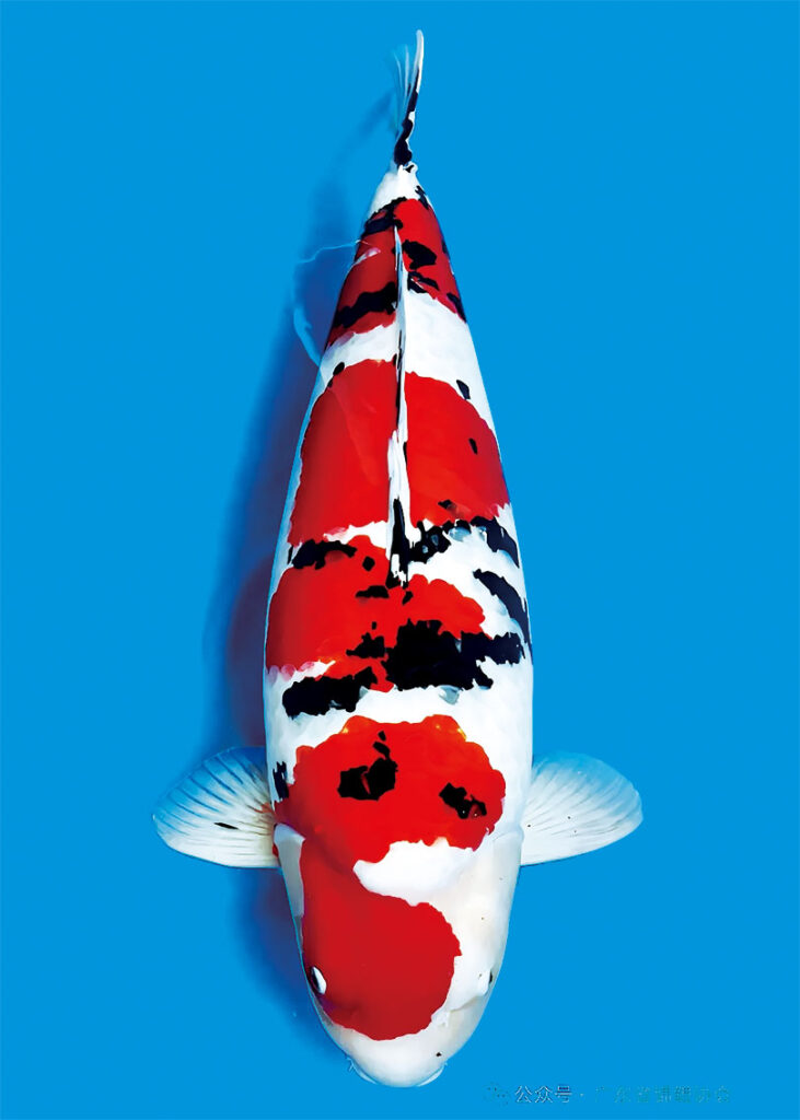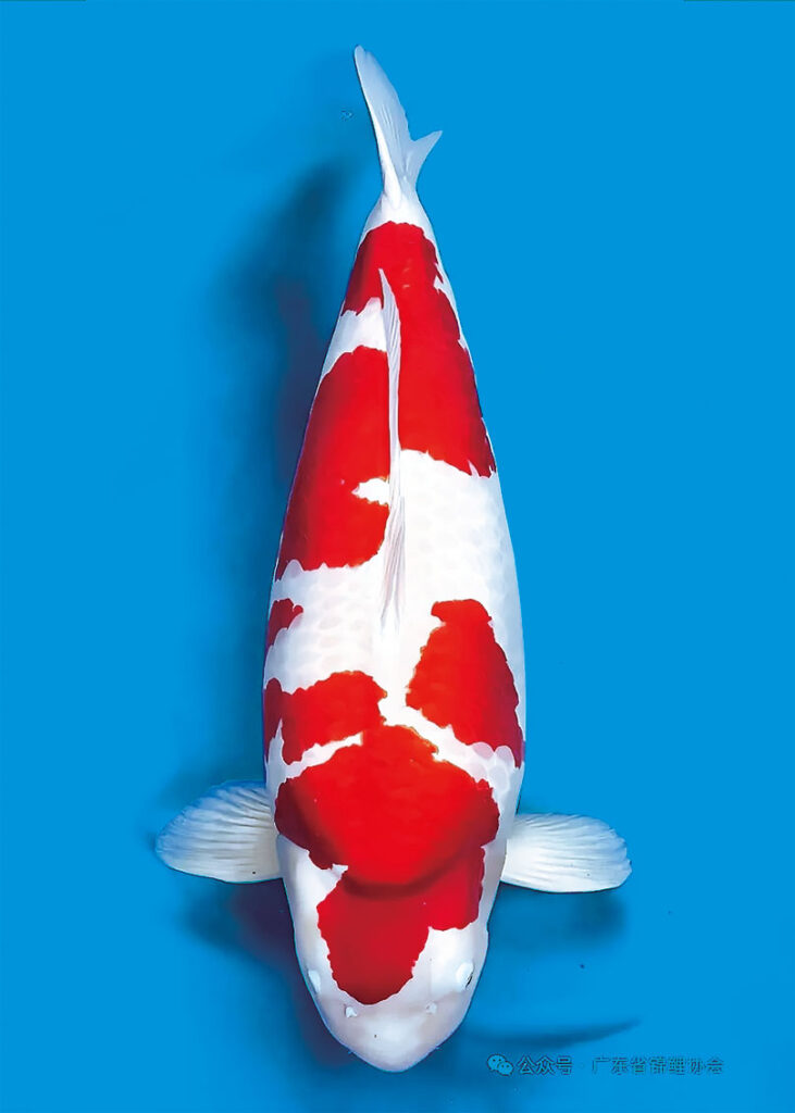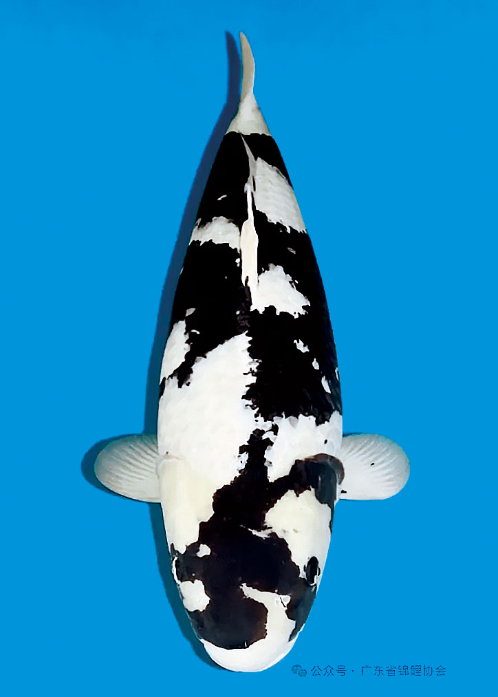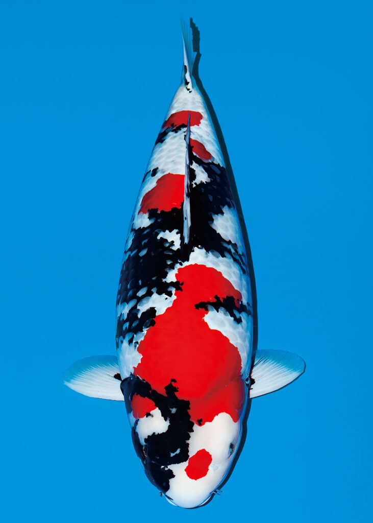 大日養鯉場㈱作出で蘇信錦鯉取り扱いの昭和三色は、2023年に行われた第63回新潟県錦鯉品評会で農林水産大臣賞を受賞後、翌2004年に三信トレーディング㈱を介して袁建棟氏が入手し、昨年行われた第55回全日本総合錦鯉品評会で7歳96㎝で大会総合優勝を受賞。その後中国へ渡り、蘇信錦鯉を介して朱軍氏が入手し、今大会98㎝で出品された。