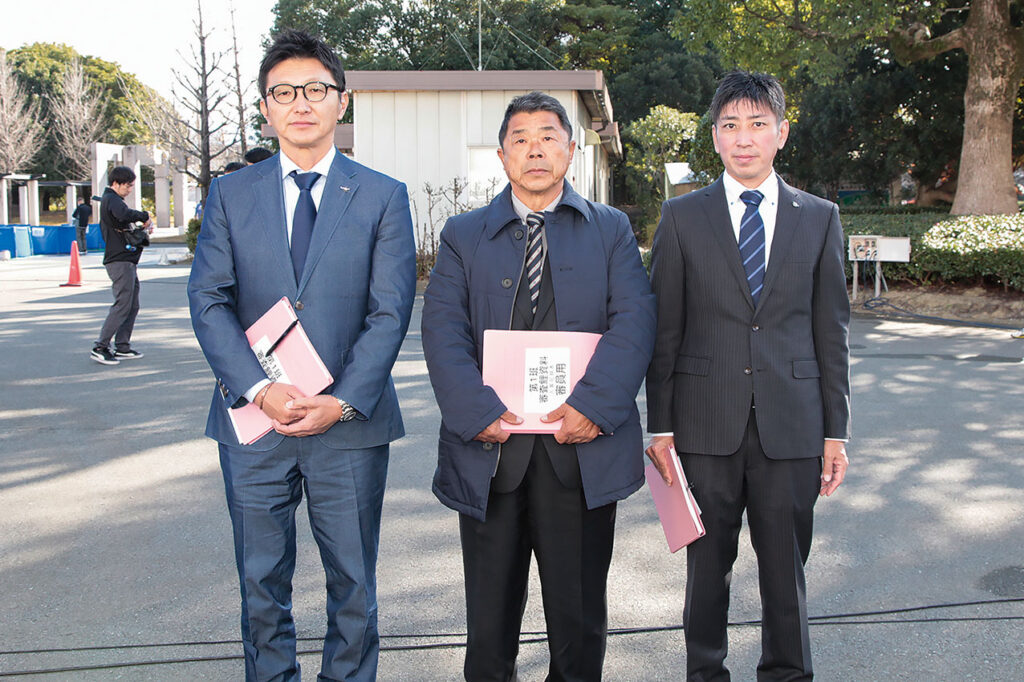 全体総合優勝の戸部節夫氏と取り扱いのおもて錦・杉本清太氏
