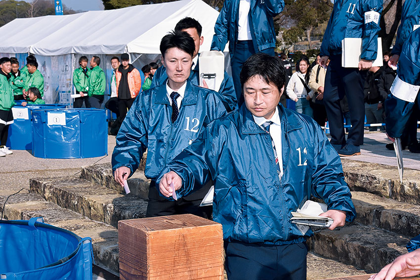 3月21日㈯・22日㈰の両日、兵庫県姫路市の大手前公園で開催。今大会の出品数は1586尾で、前回を165尾下回った。内訳は日本が122減、海外は43減。今回は袋出品の鯉(12部〜43部)の開放プール使用料と、48部〜63部のプール出品料の値上げがあったものの、上昇は10%ほどで、その影響はおそらく小さい。全国大会においては、前年から100尾以上の増減があるのは珍しいことではないため、一時的な減少とも考えられるが、出品意欲をかき立てる魅力ある品評会づくりへの取り組みは、今後ますます必要になるだろう。