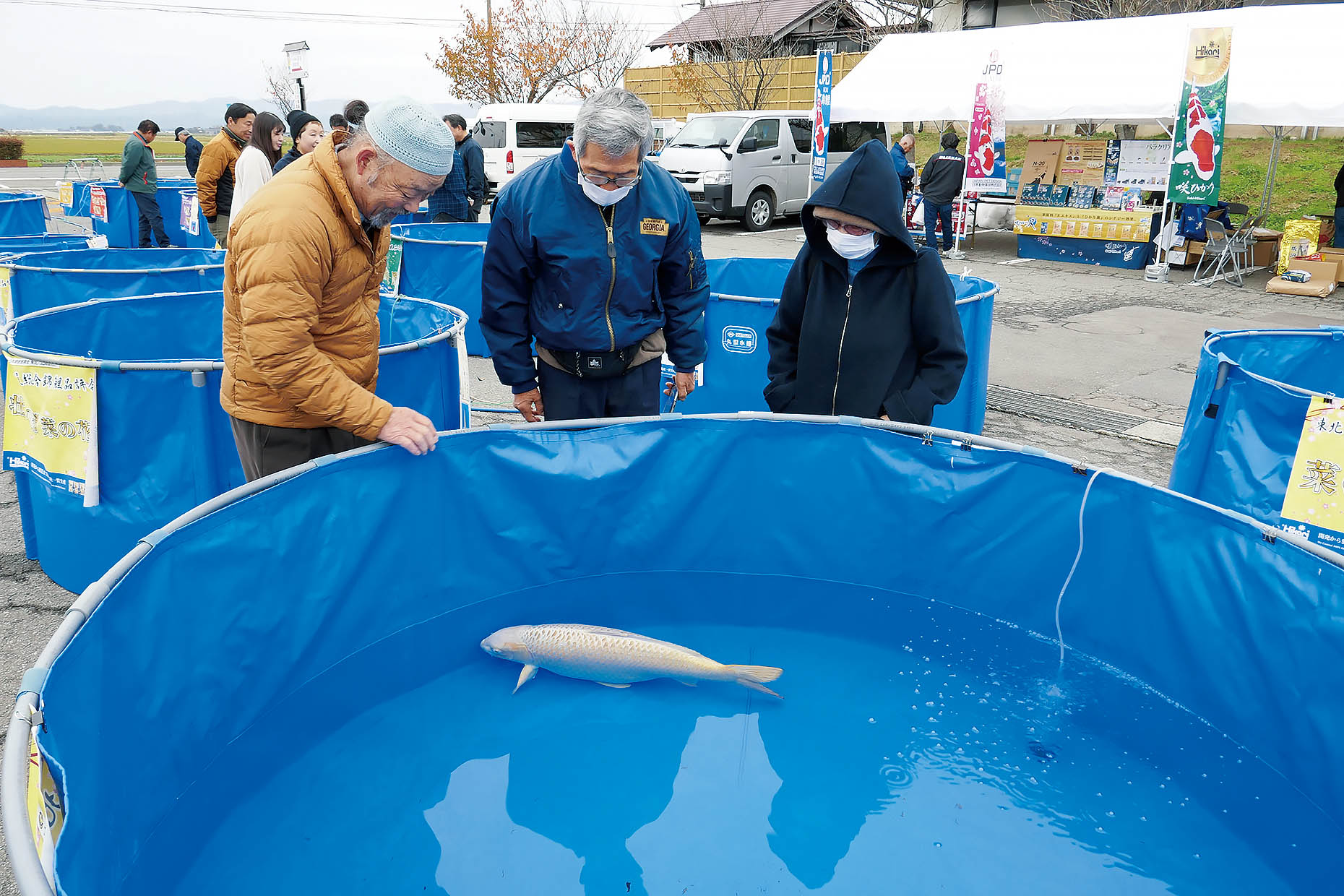 幼魚総合優勝は松田養鯉場(青森)のユーチューブチャンネルの「品評会チャレンジ」企画で販売した鯉、ジャンボ賞の山吹黄金は清野氏が第40回大会で同賞を受賞した黄金をメス親にして成澤養魚場(山形)が生産した鯉であるなど、興味深いエピソードも聞かれた。