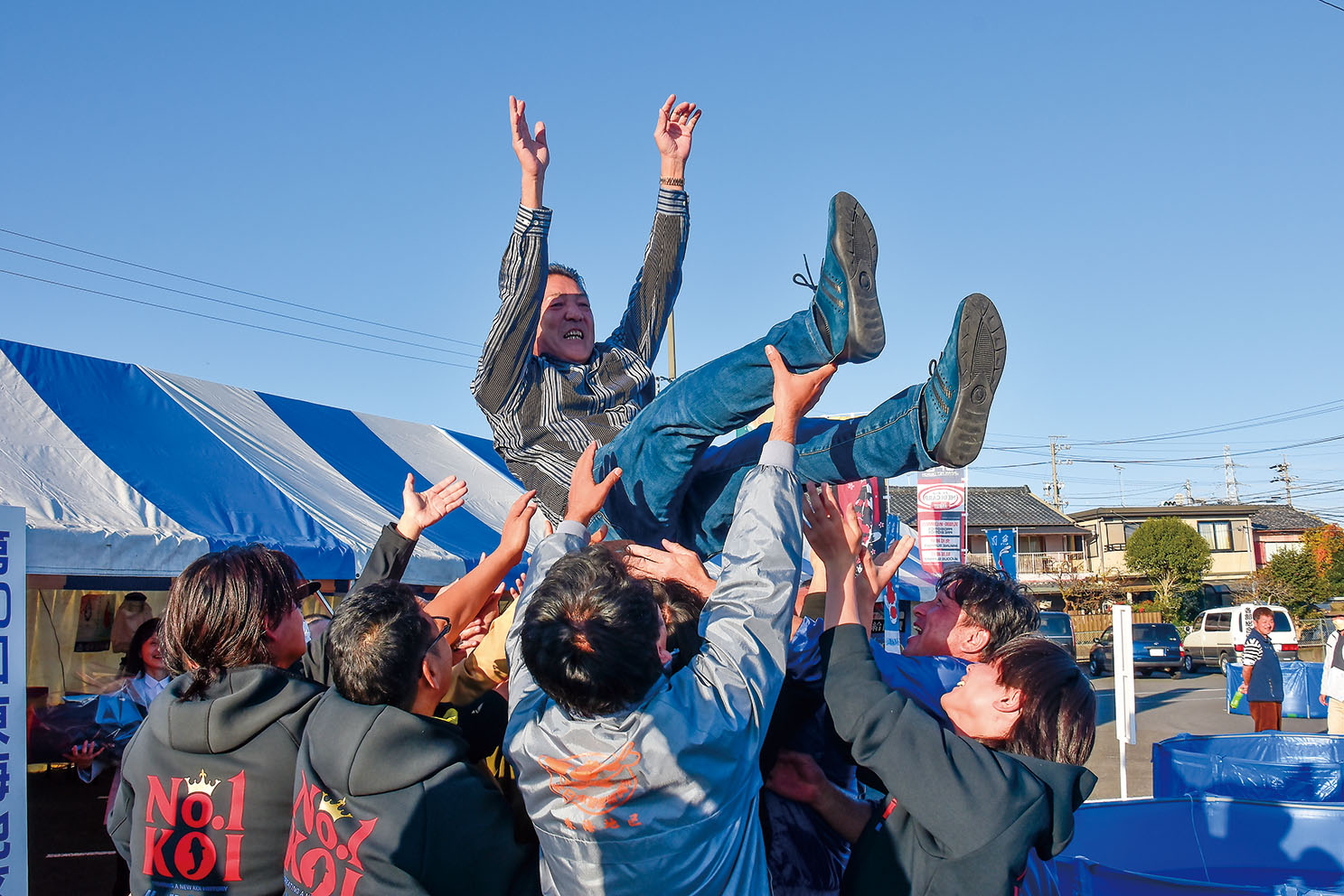 宙に舞った全体総合優勝の横井英司氏