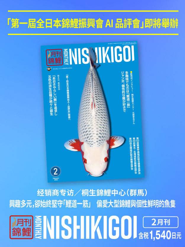 很多人都说Kanno养鲤场是五色的龙头生产地,其品质一直在显着提高。其出品的锦鲤在全国品评会中的表现得到了高度的评价。