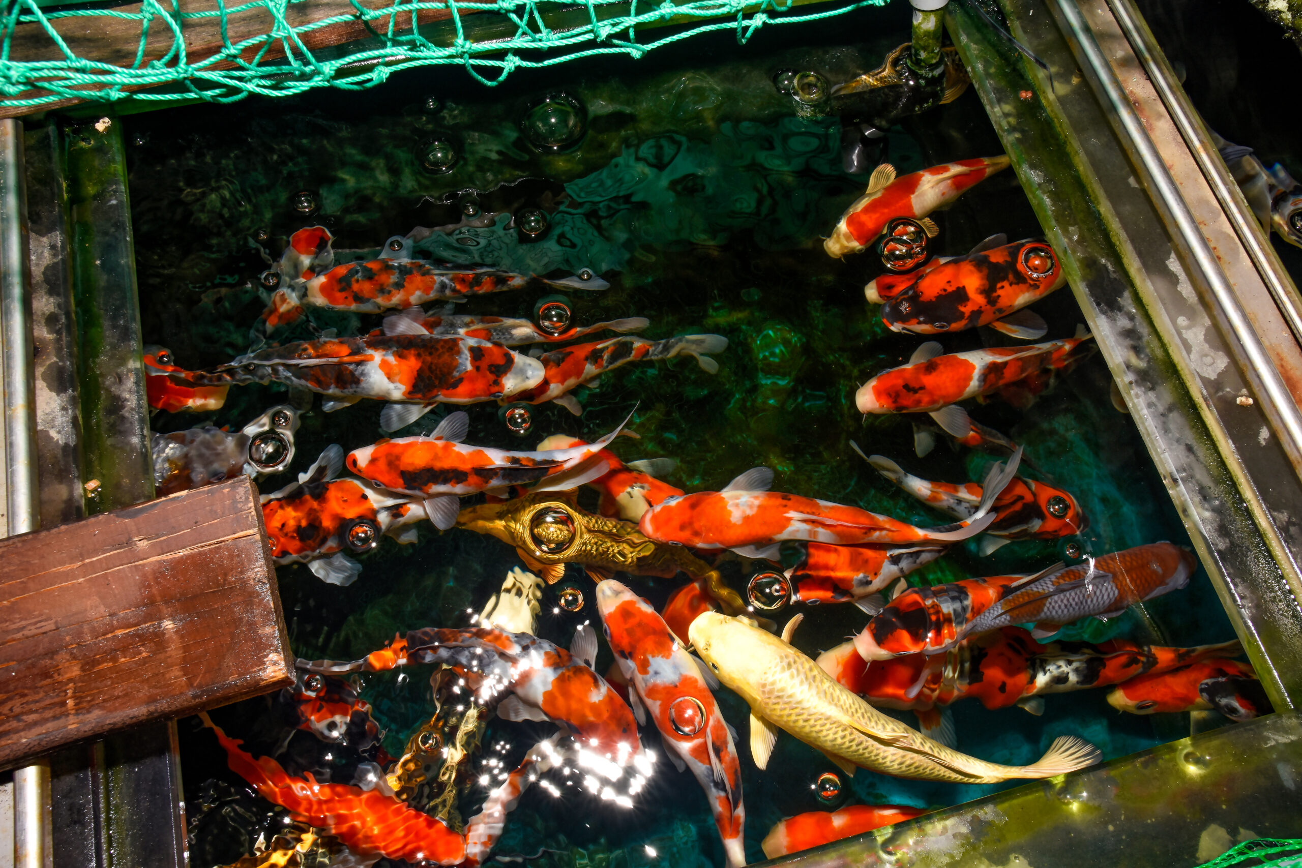 鸟居:进货以当岁的小尺寸为主,所以大概是15cm~25cm左右。按现在国内的状况,尺寸越大买家越少,很难卖。话虽如此,个人也想销售自己养到一定尺寸的鲤,所以觉得能持有几条那种尺寸的也不错。